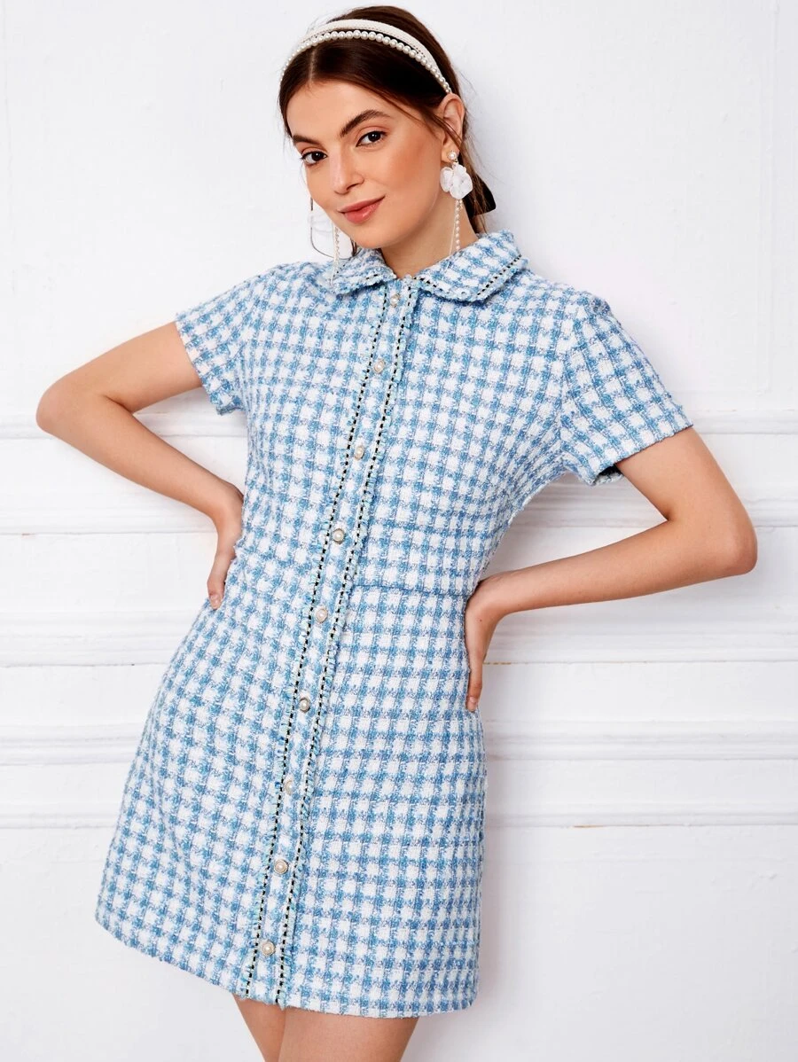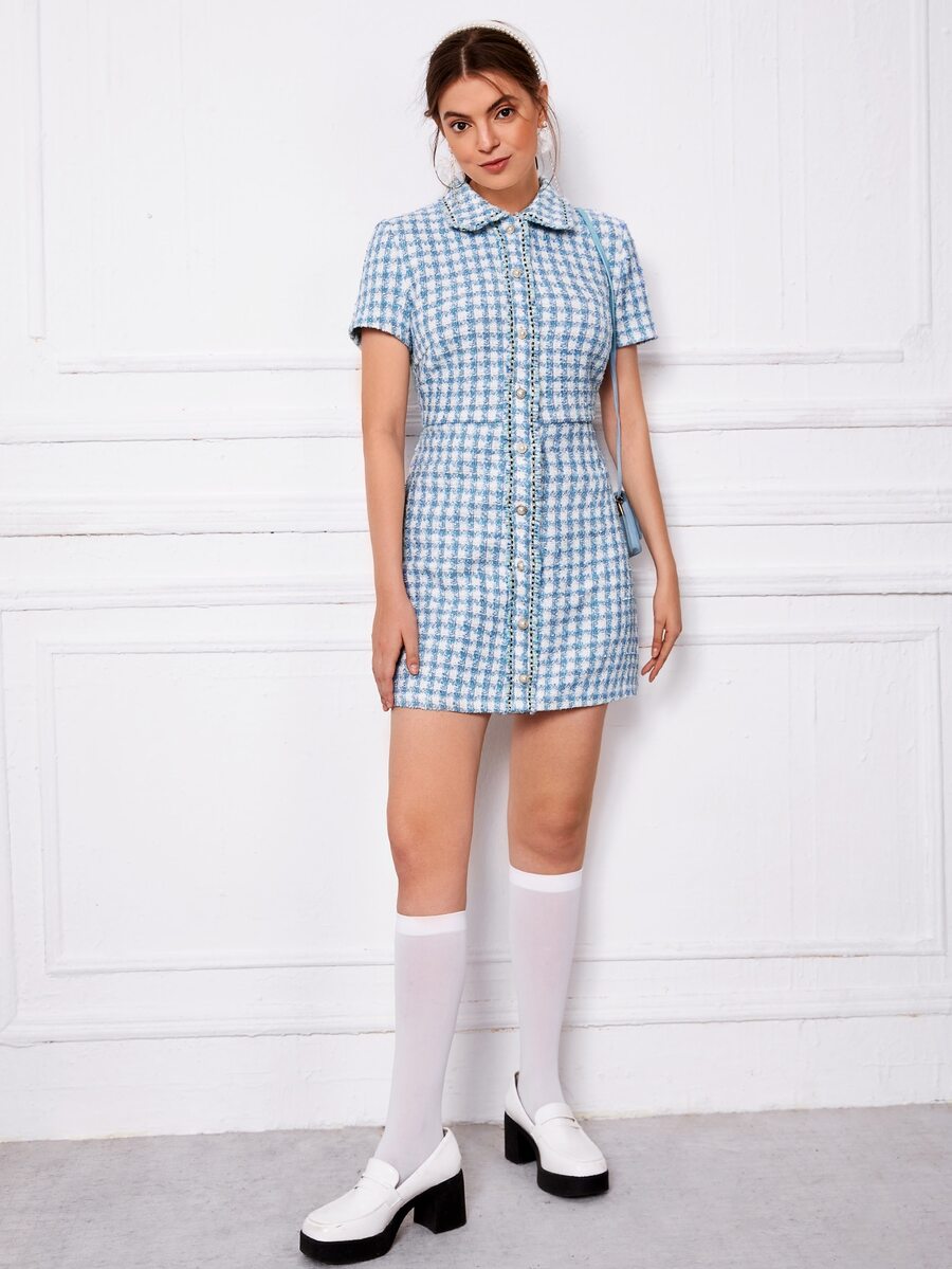 SHEIN Privé Plaid Raw Trim Tweed Dress