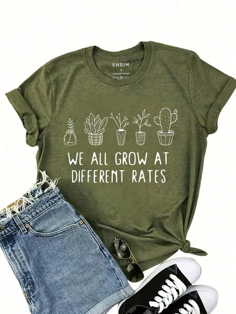 SHEIN LUNE Plant Slogan Printed T-Shirt
