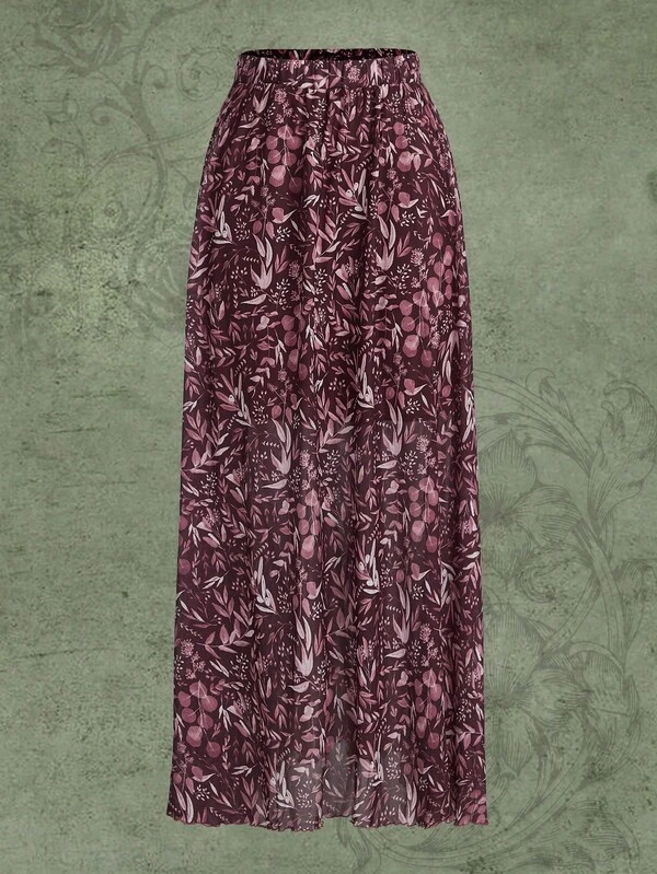 Anis Illustration Plants Print Skirt