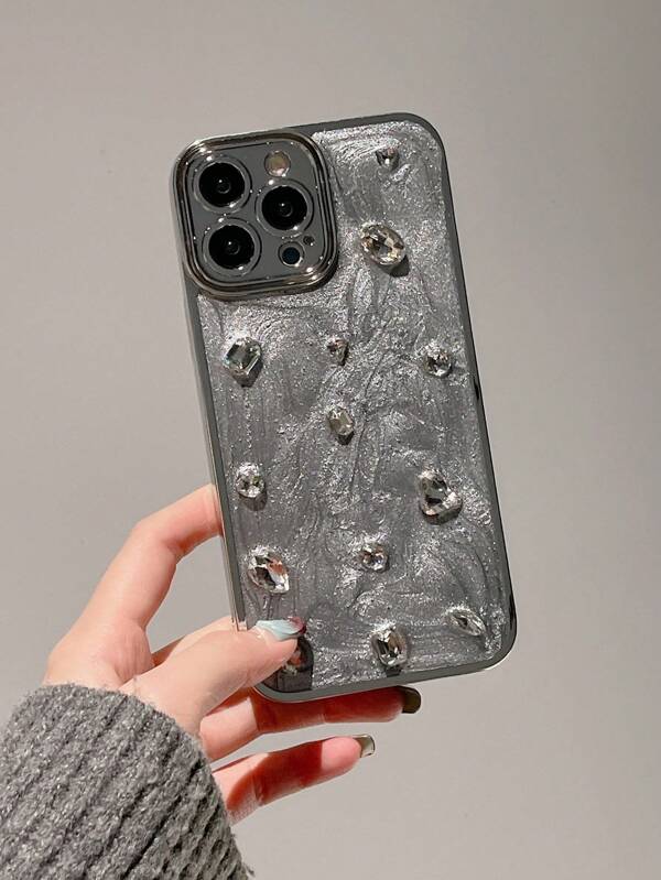 Plating Drip Glue, Cream And Rhinestone Anti-Fall Phone Protective Cover For Apple Iphone