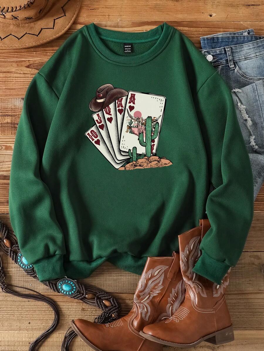 SHEIN LUNE Playing Card Print Thermal Lined Sweatshirt