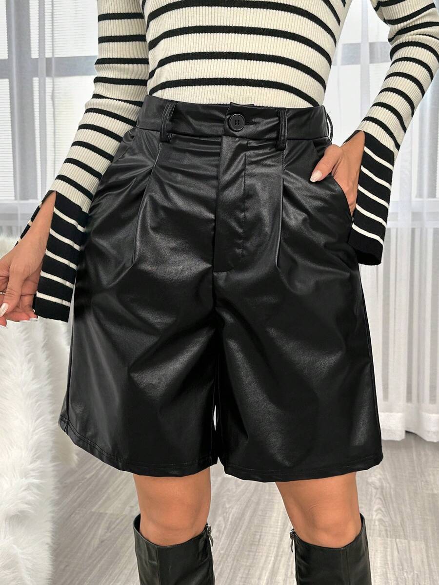 SHEIN Essnce Plicated Detail PU Leather Bermuda Shorts