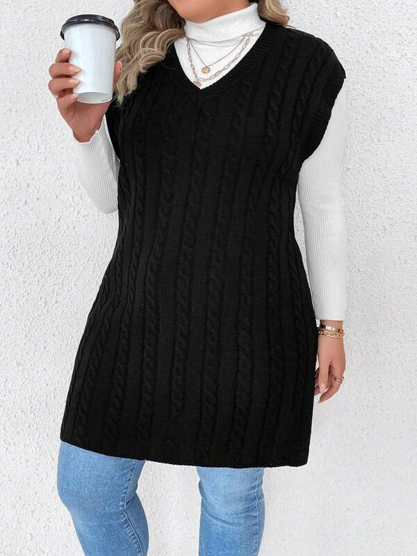 Plus 1pc Cable Knit V Neck Sweater Vest