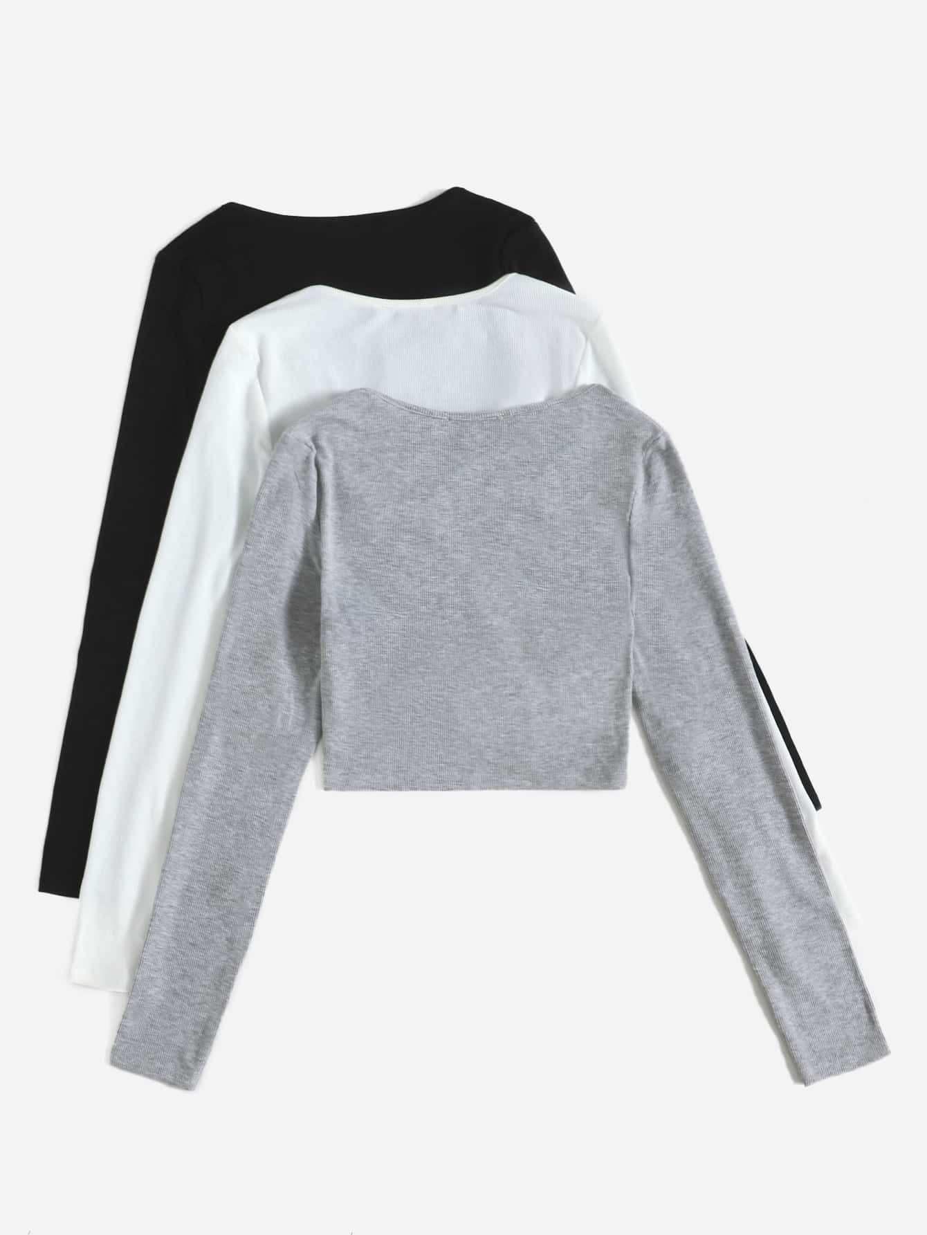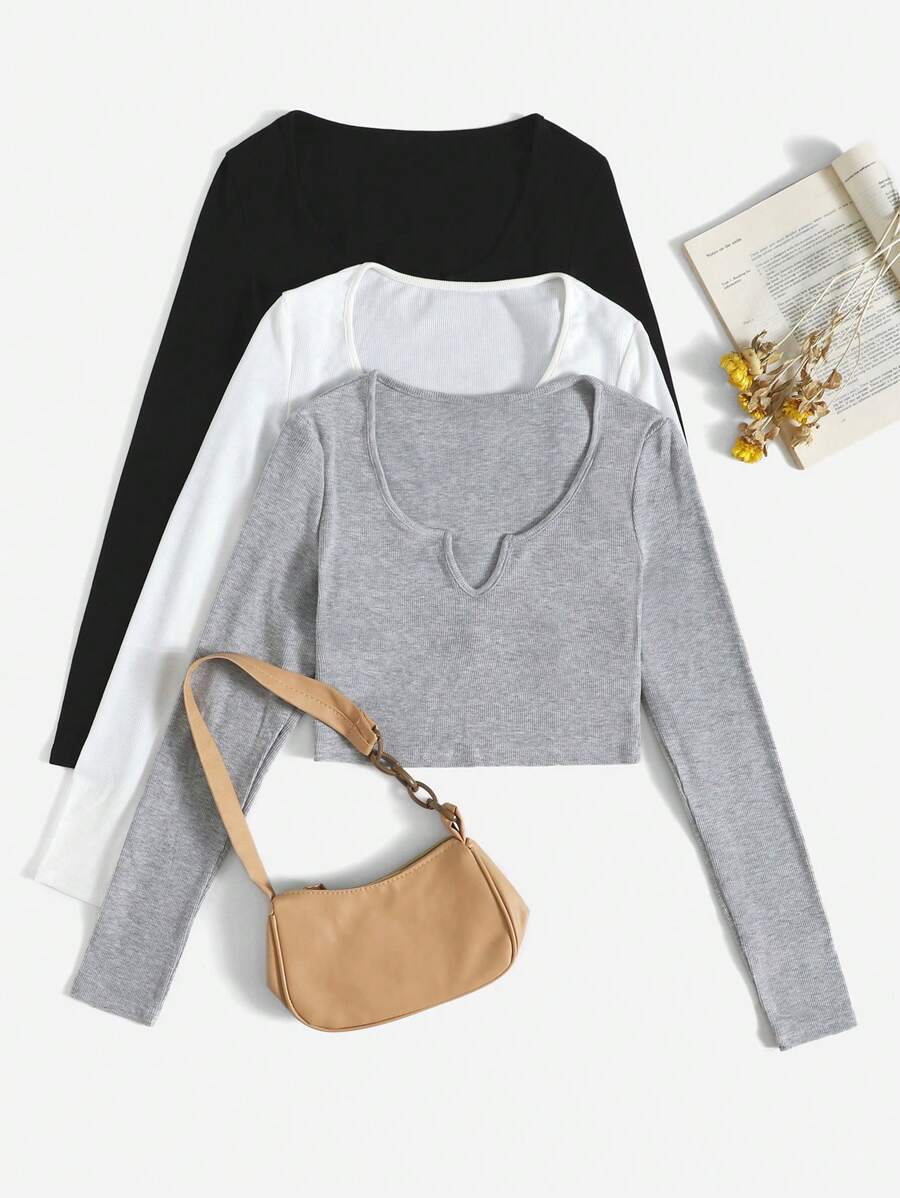 SHEIN EZwear Plus 3pcs Notched Neck Tee