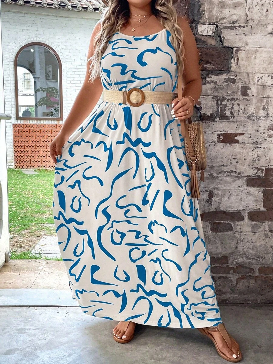 SHEIN LUNE Plus Allover Print Cami Dress Without Belt