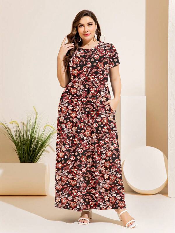DEARCASE Plus Allover Print Hidden Pocket Dress