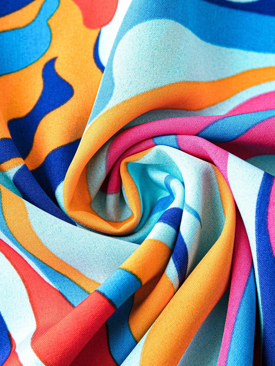 SHEIN VCAY Plus Allover Print Knot Cuff Shirt Dress