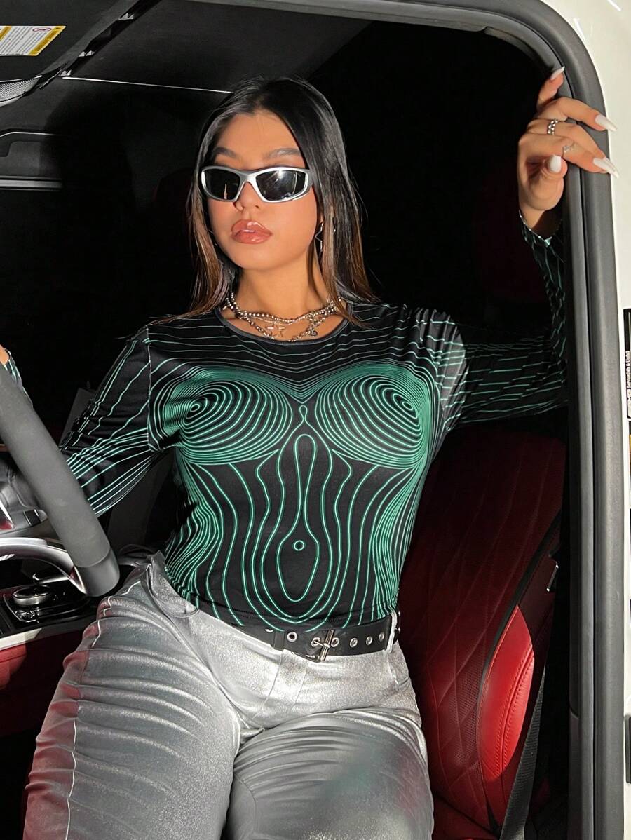 SHEIN Coolane Plus Allover Print Lettuce Trim Tee
