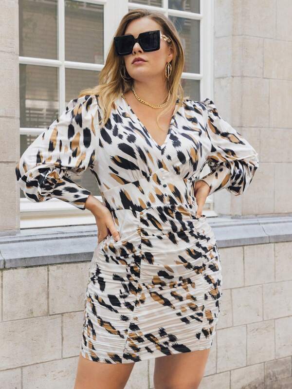 SHEIN Privé Plus Allover Print Ruched Bodycon Dress