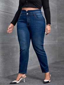 SHEIN Essnce Plus Asymmetrical Waist Skinny Jeans