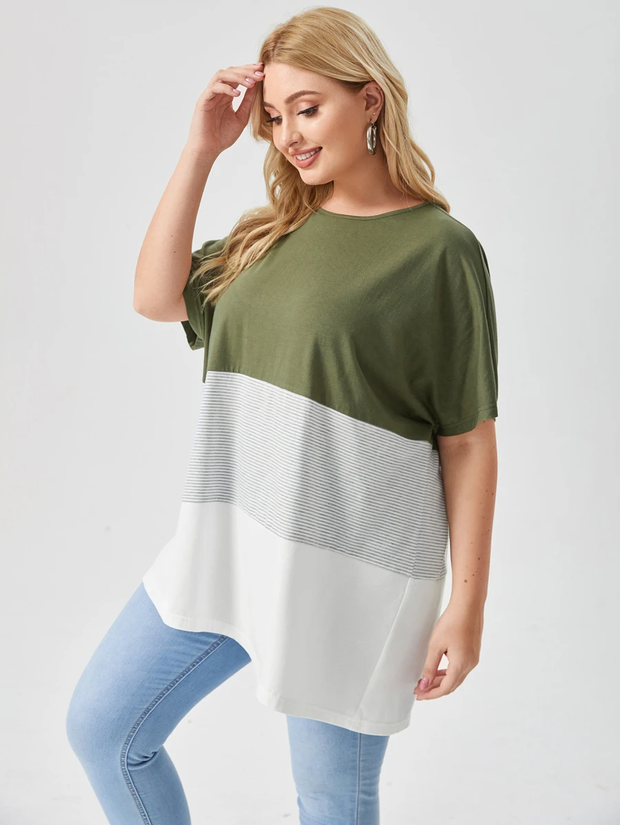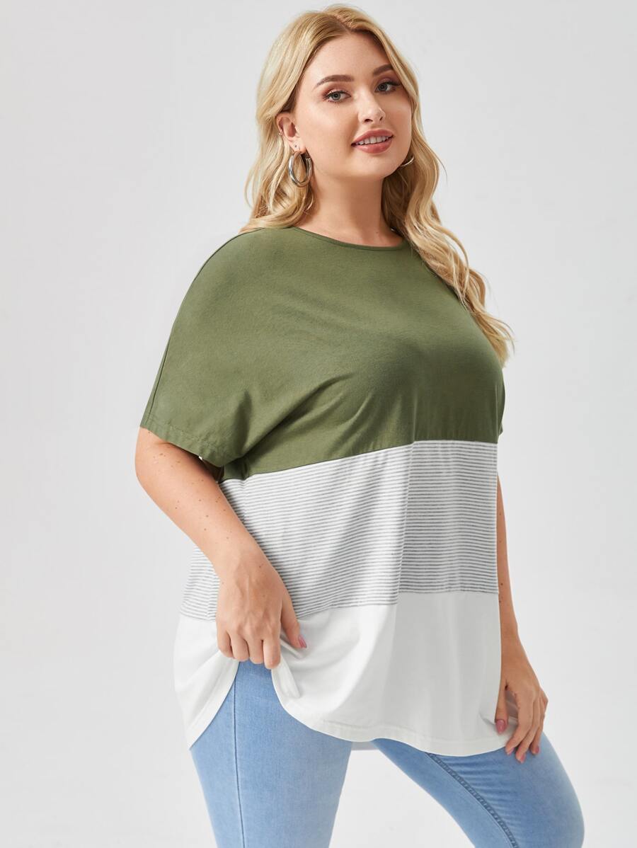 SHEIN LUNE Plus Batwing Sleeve Colorblock Tee
