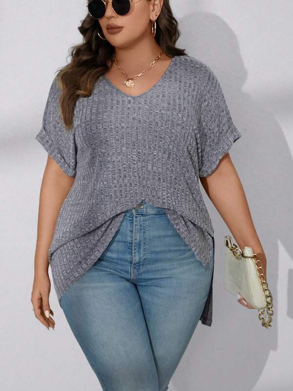 SHEIN LUNE Plus Batwing Sleeve High Low Hem Tee