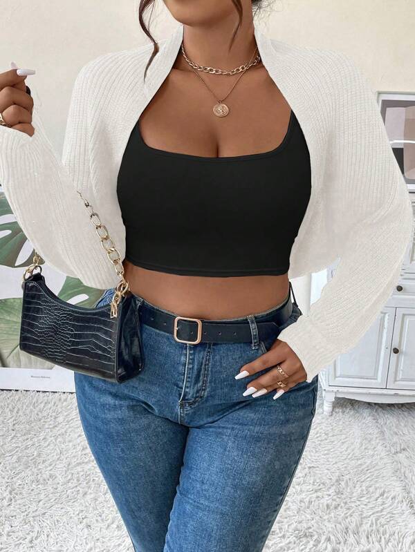 SHEIN SXY Plus Batwing Sleeve Open Front Crop Cardigan