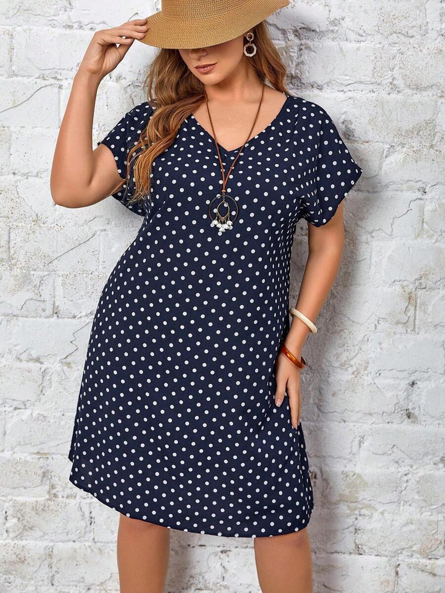 EMERY ROSE Plus Batwing Sleeve Polka Dot Dress