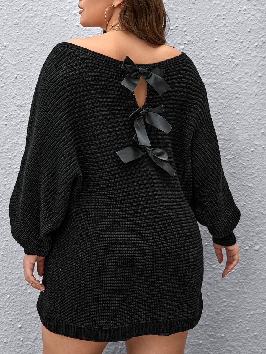 SHEIN Privé Plus Batwing Sleeve Tie Back Sweater