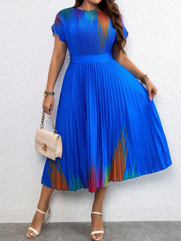 SHEIN LUNE Plus Brush Print Pleated Hem Dress
