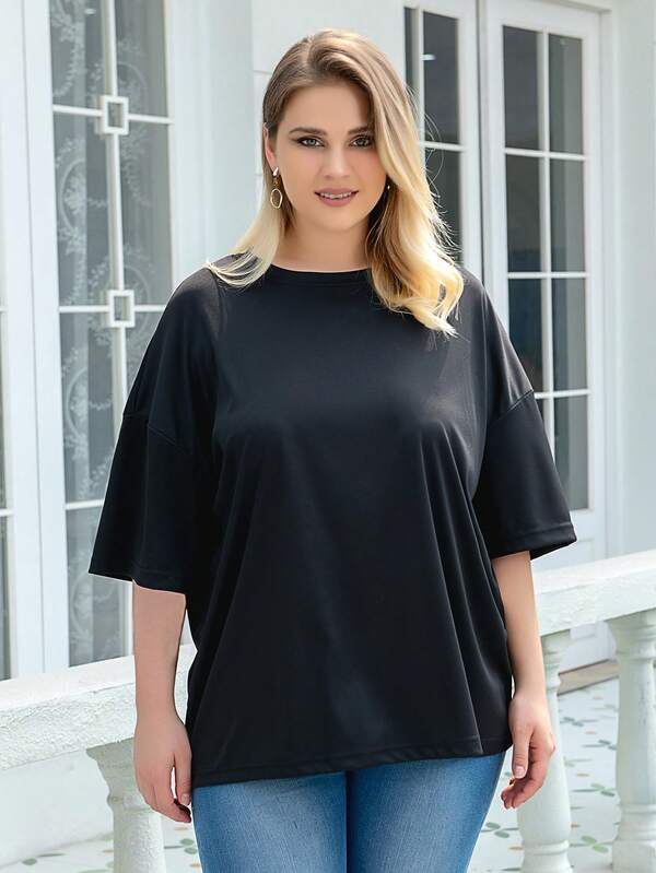 SHEIN Unity Plus Butterfly & Letter Graphic Drop Shoulder Tee