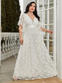 Plus Butterfly Sleeve Lace Wedding Dress