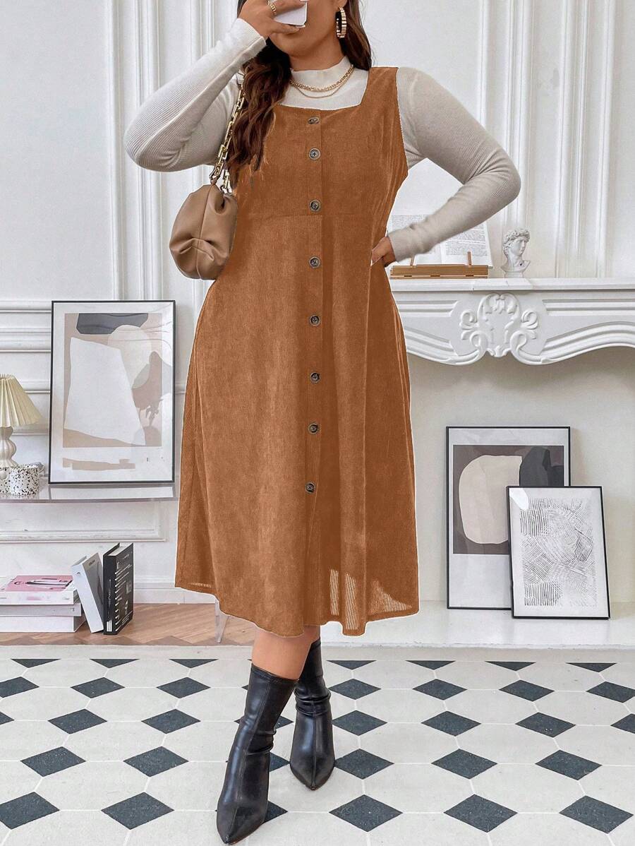 SHEIN Frenchy Plus Button Front Dress Without Sweater