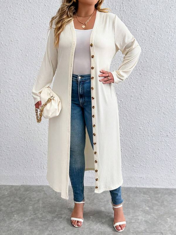 SHEIN Essnce Plus Button Front Longline Coat