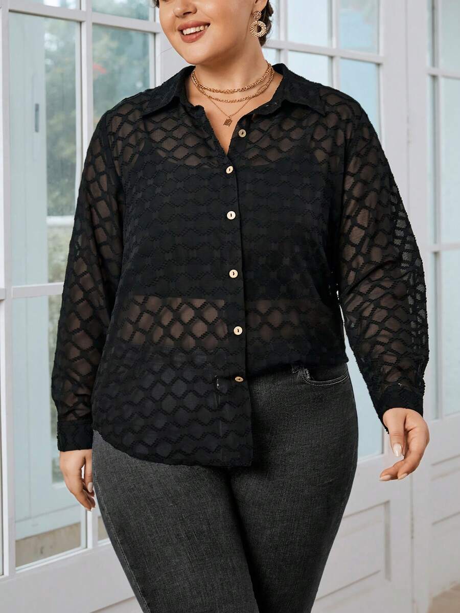 SHEIN Privé Plus Button Front Shirt Without Cami Top