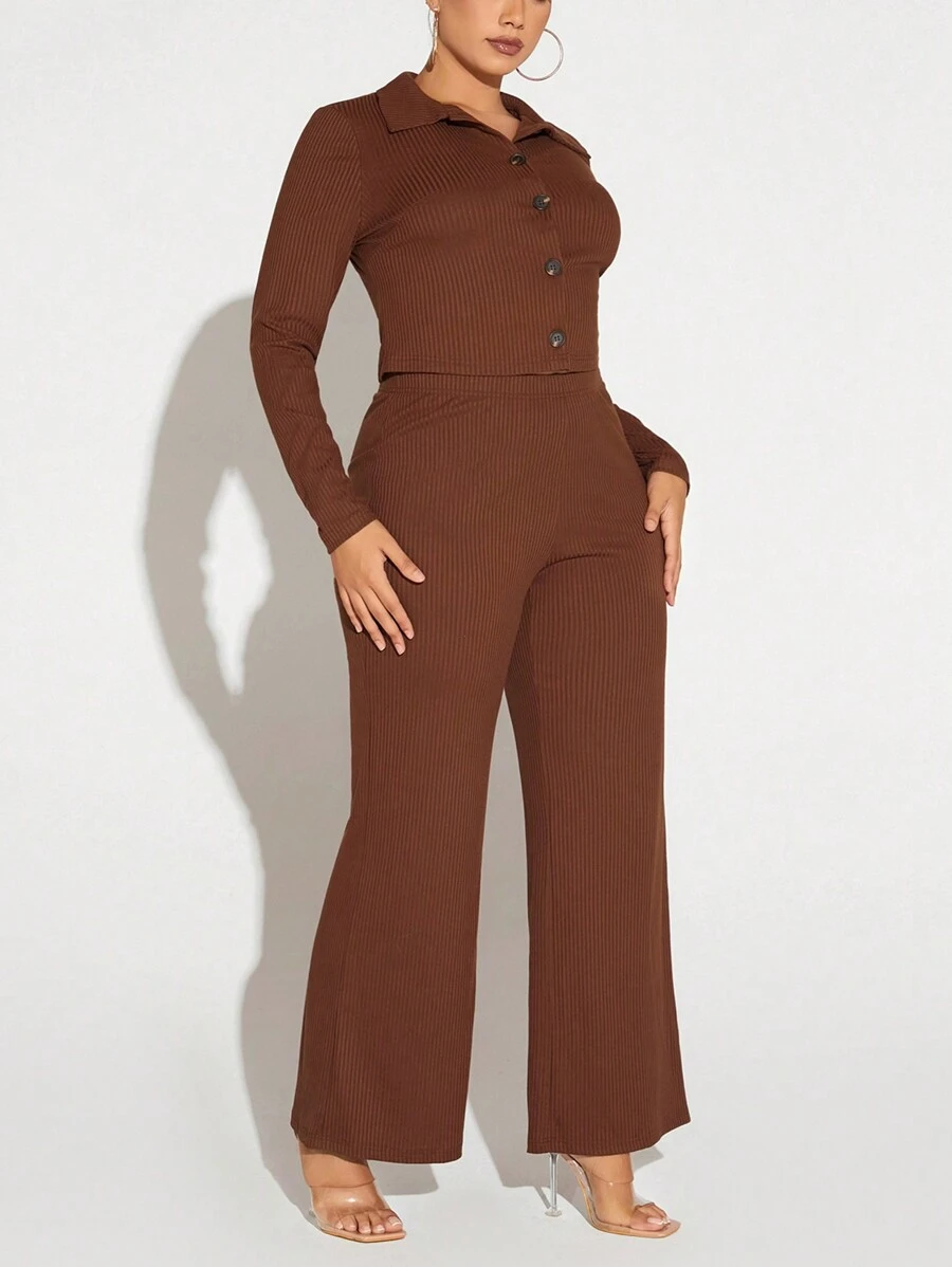 SHEIN SXY Plus Button Front Tee & Flare Leg Pants
