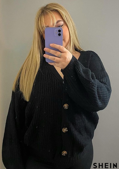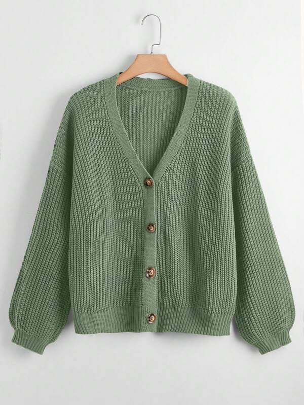 SHEIN LUNE Plus Button Up Drop Shoulder Cardigan