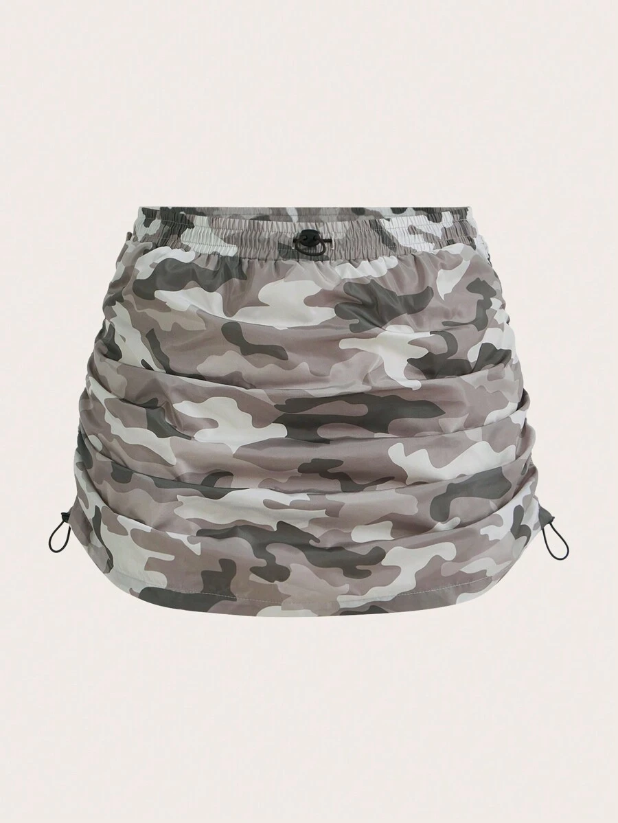 SHEIN Coolane Plus Camo Print Drawstring Side Skirt