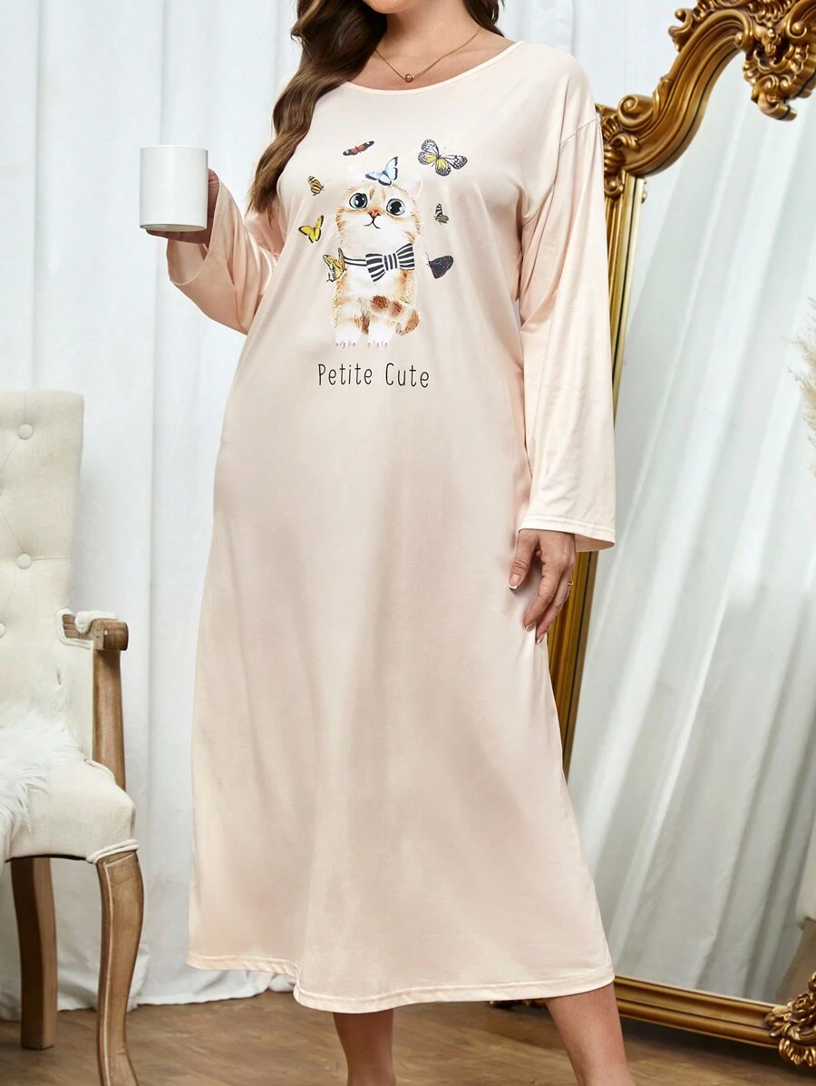Plus Cartoon & Letter Graphic Nightdress