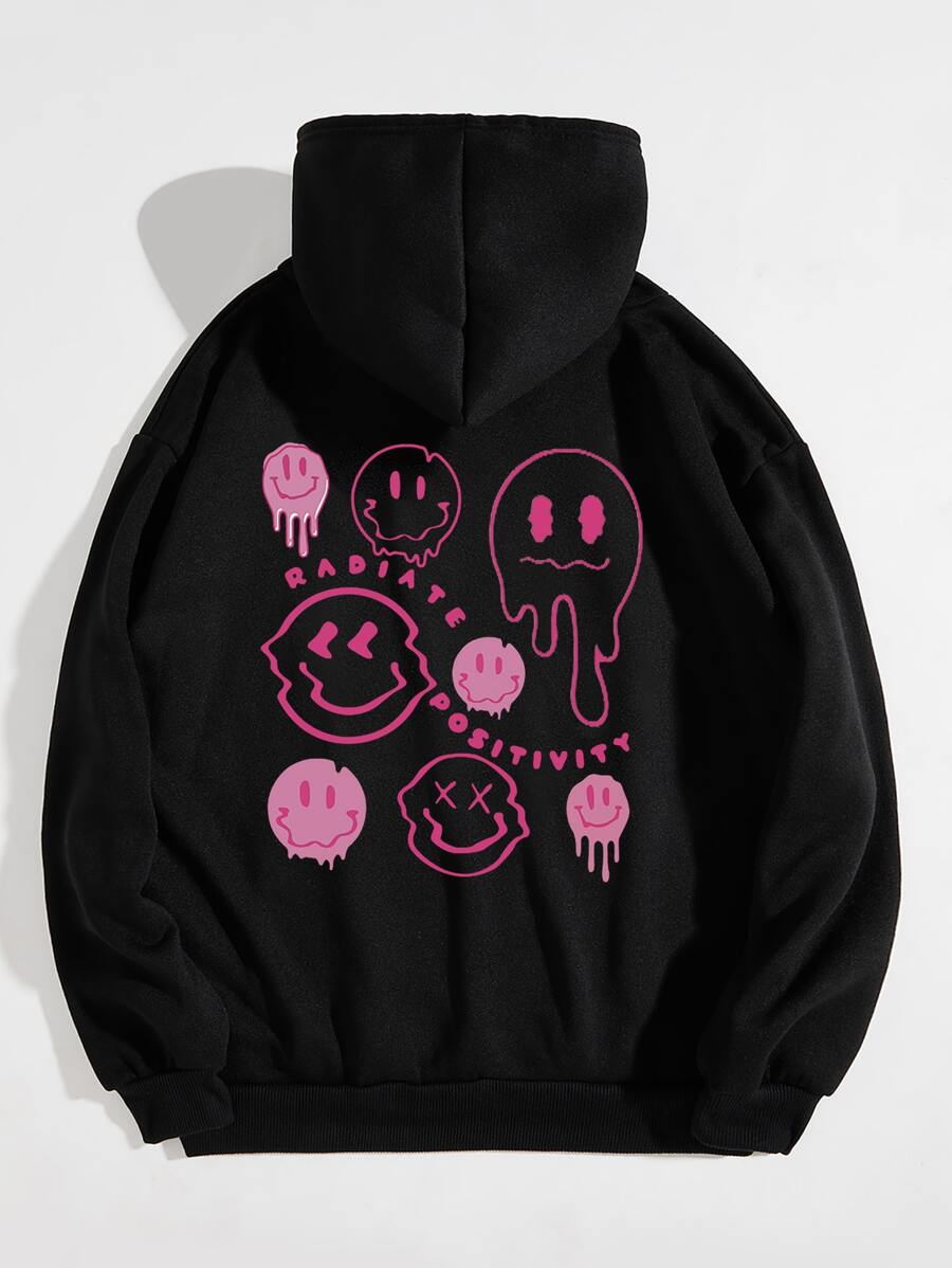 Plus Cartoon And Letter Graphic Drawstring Hoodie