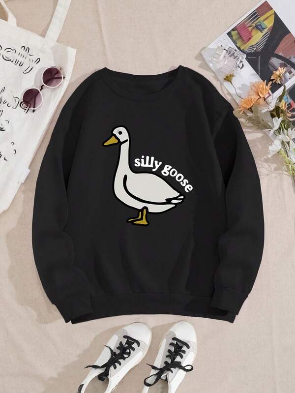 Plus Cartoon And Letter Graphic Thermal Lined Sweatshirt