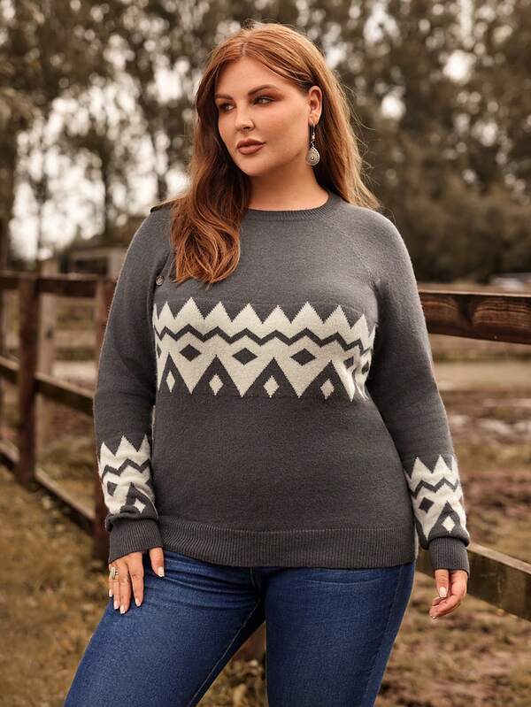 EMERY ROSE Plus Chevron Pattern Raglan Sleeve Sweater