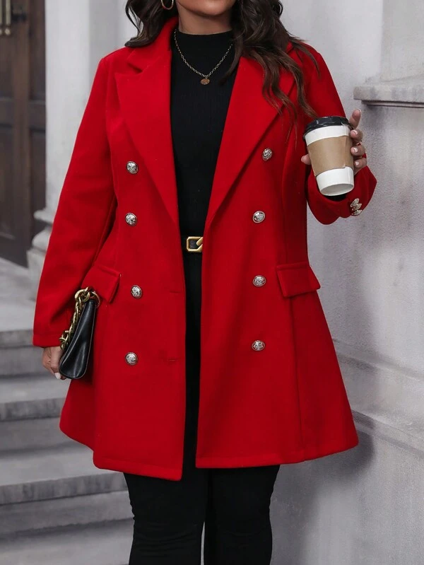 Plus Christmas Lapel Neck Double Breasted Overcoat