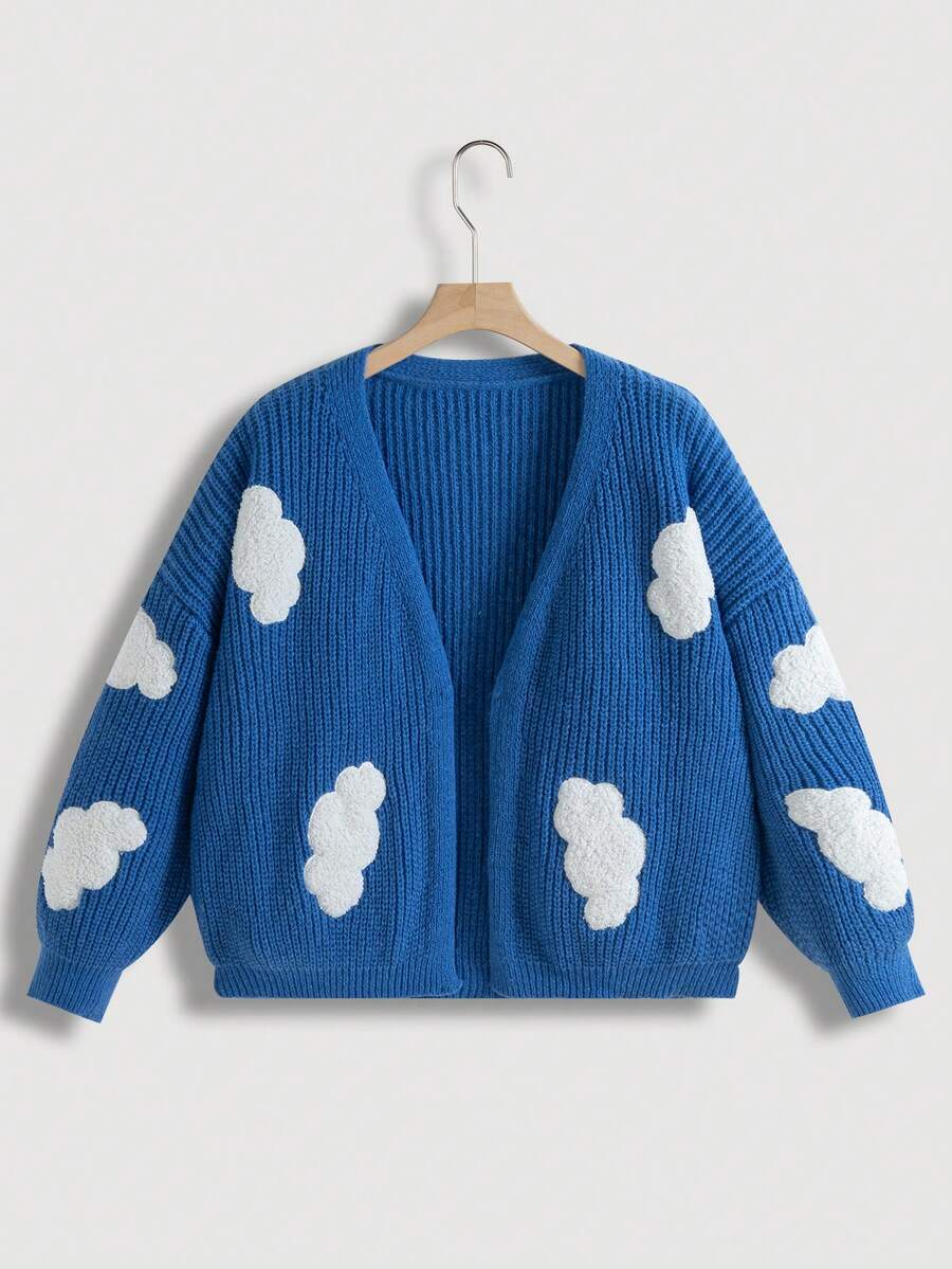 SHEIN Qutie Plus Clouds Pattern Drop Shoulder Open Front Cardigan