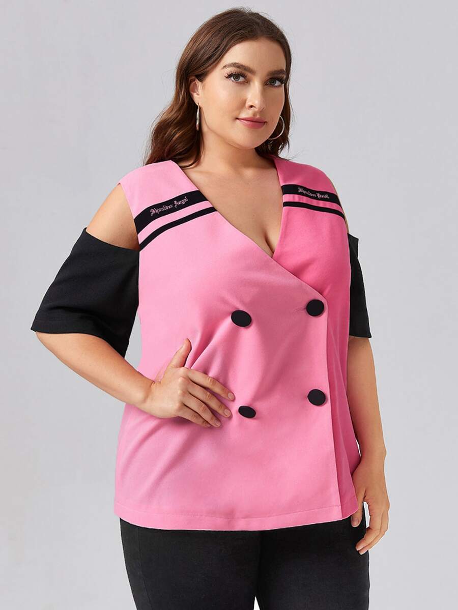 Dash of Pep Plus Cold Shoulder Double Breasted Blazer