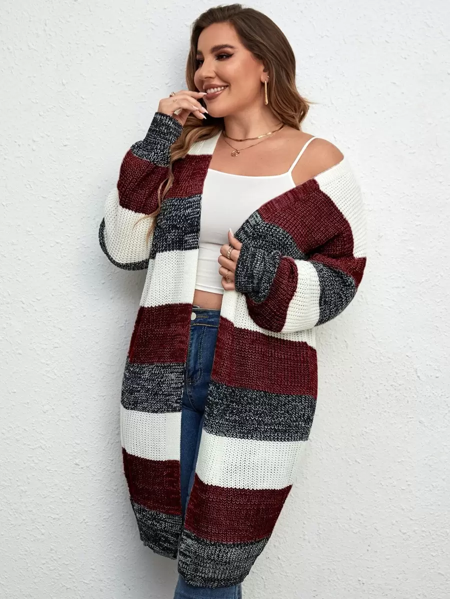 SHEIN LUNE Plus Color Block Drop Shoulder Duster Cardigan