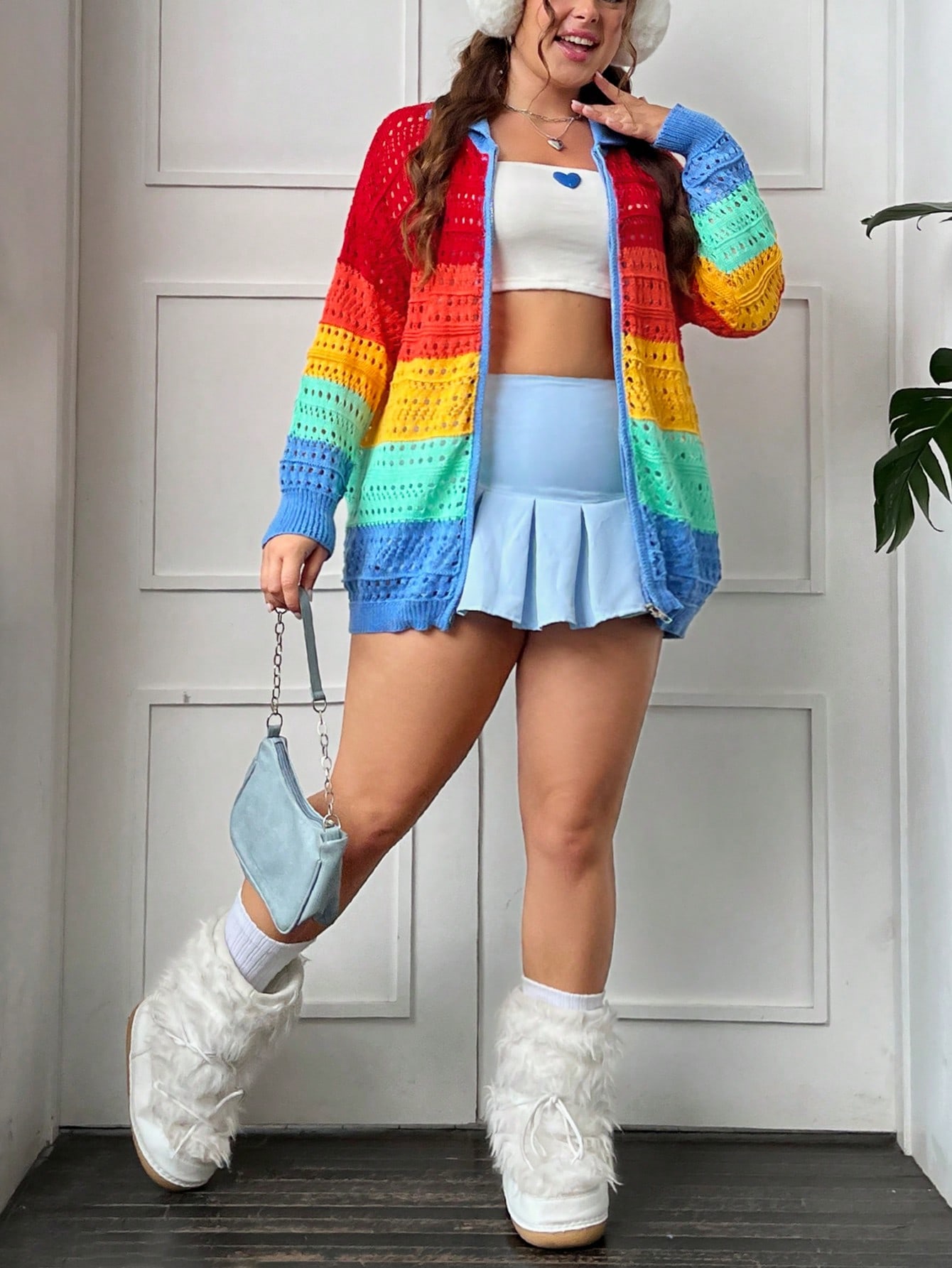 SHEIN Qutie Plus Color Block Drop Shoulder Pointelle Knit Cardigan