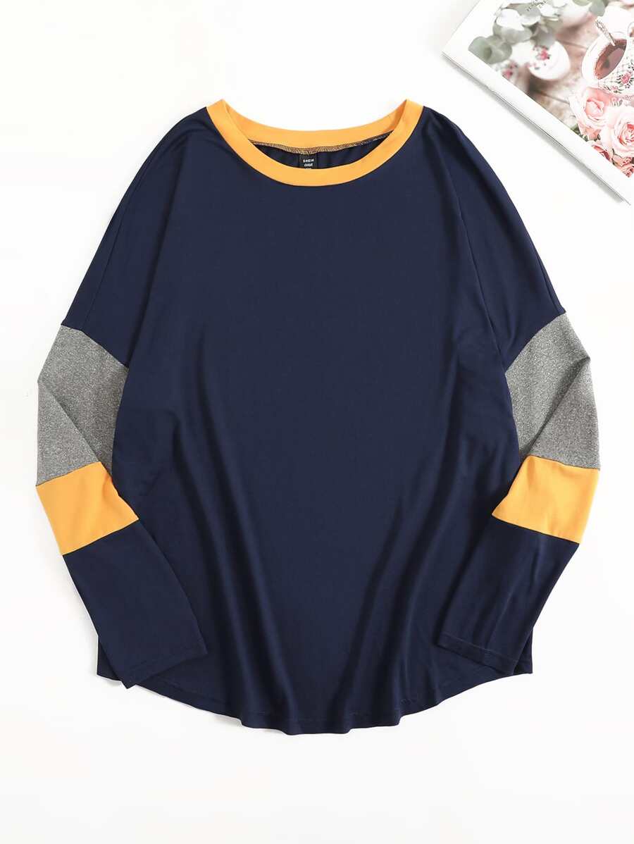 SHEIN Unity Plus Color Block Drop Shoulder Tee