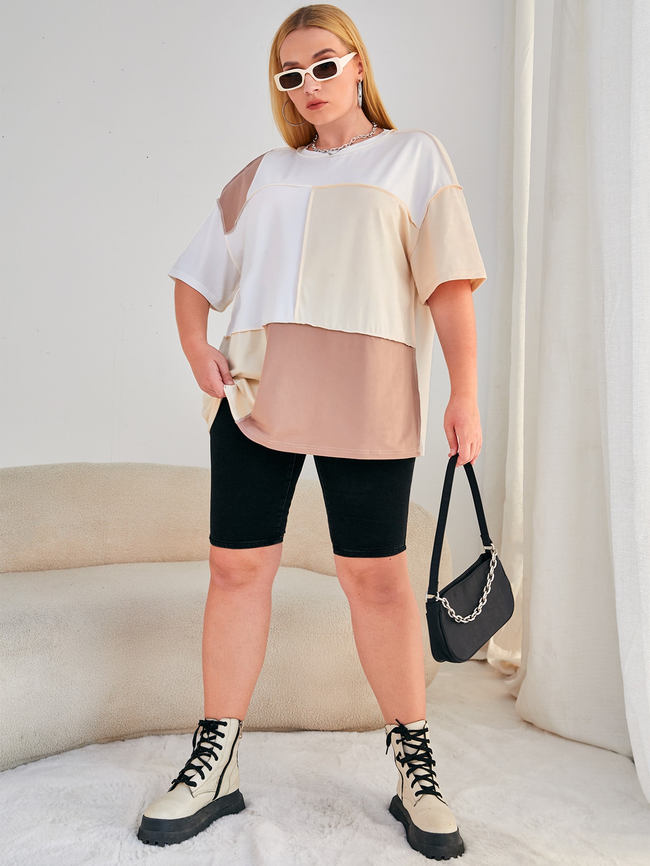 SHEIN EZwear Plus Color Block Drop Shoulder Tee