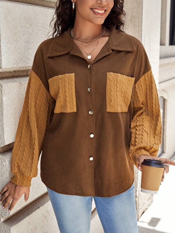 SHEIN LUNE Plus Colorblock Drop Shoulder Pocket Patched Jacket