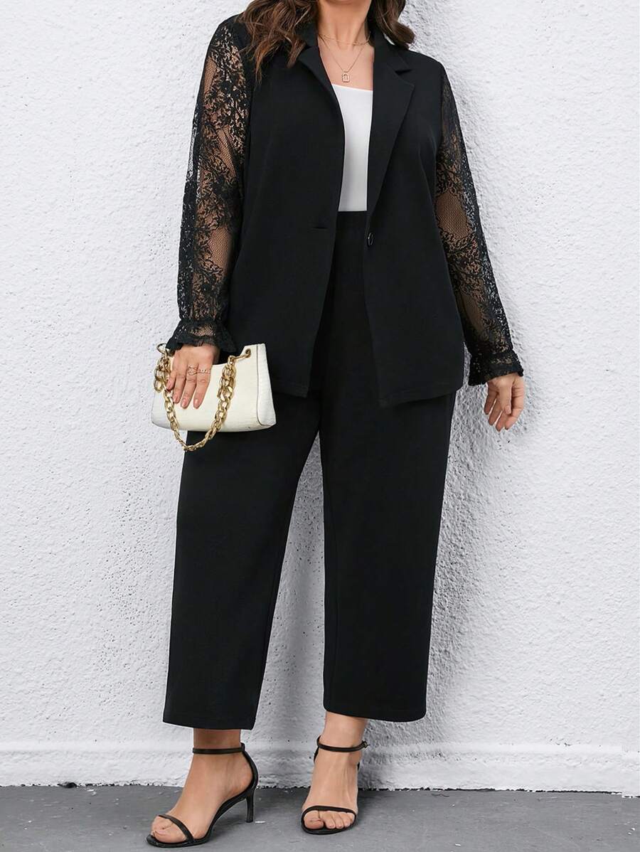 SHEIN CURVE+ Plus Contrast Lace Blazer & Pants