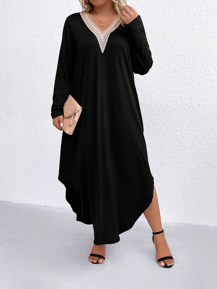 SHEIN LUNE Plus Contrast Lace Curved Hem Tee Dress