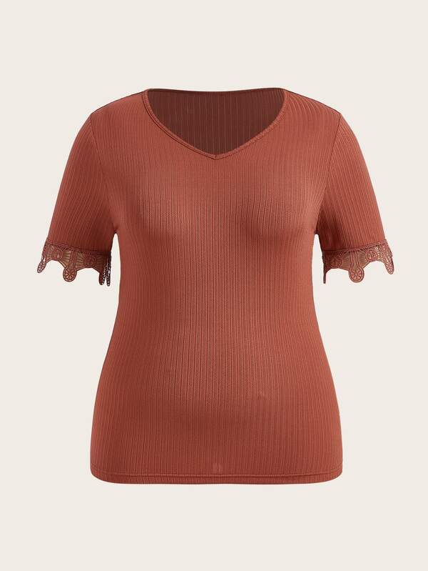 SHEIN LUNE Plus Contrast Lace Tee