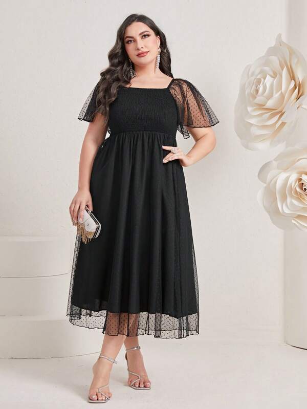 SHEIN Modely Plus Contrast Mesh Butterfly Sleeve Dress