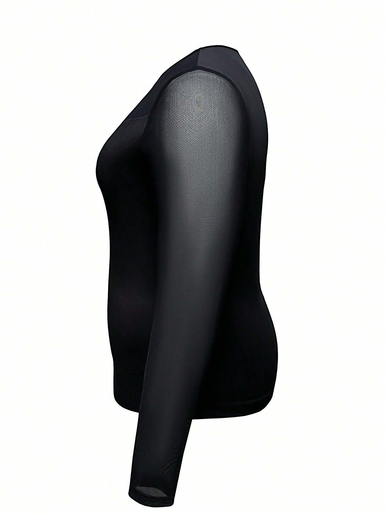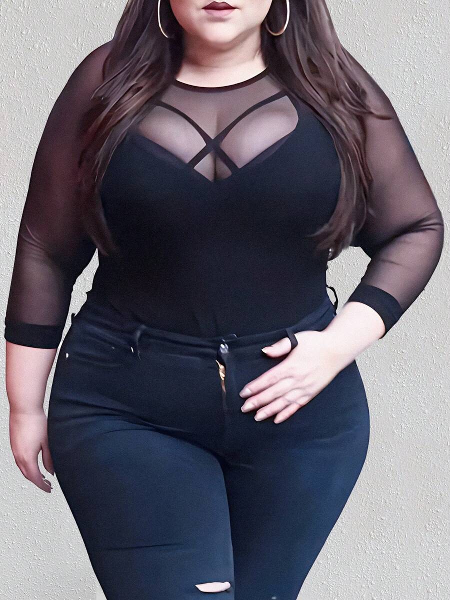 SHEIN SXY Plus Contrast Mesh Yoke Criss Cross Front Top
