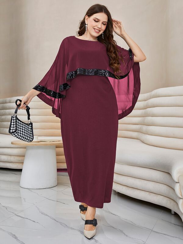 SHEIN Modely Plus Contrast Sequin Split Hem Cape Dress