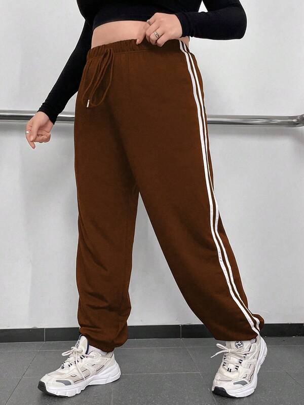 Plus Contrast Striped Tape Drawstring Waist Sweatpants