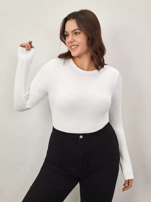 SHEIN BASICS Plus Cotton Solid Form Fitted Tee