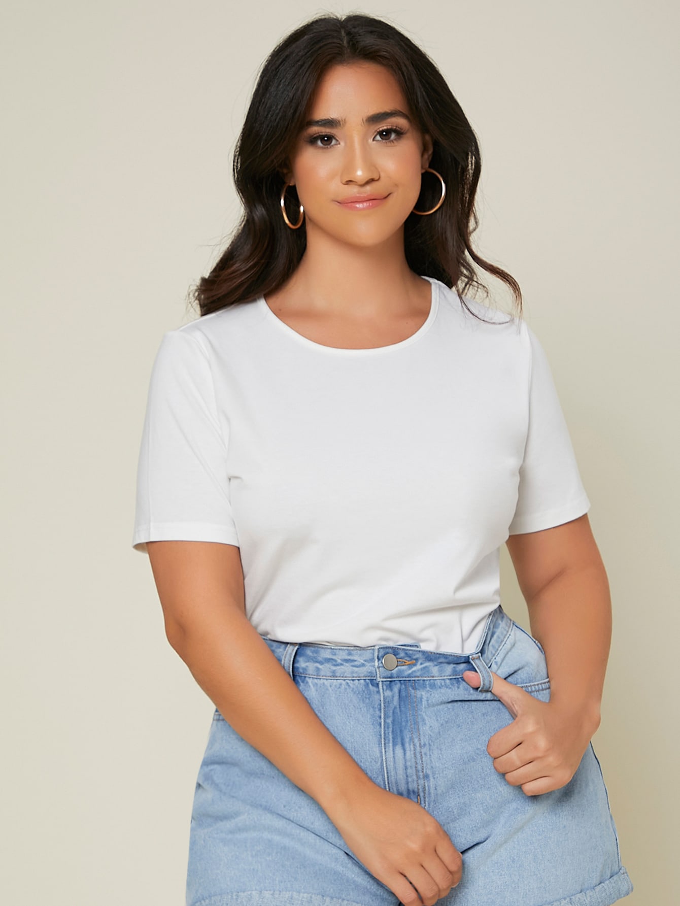 SHEIN BASICS Plus Cotton Solid Round Neck Tee