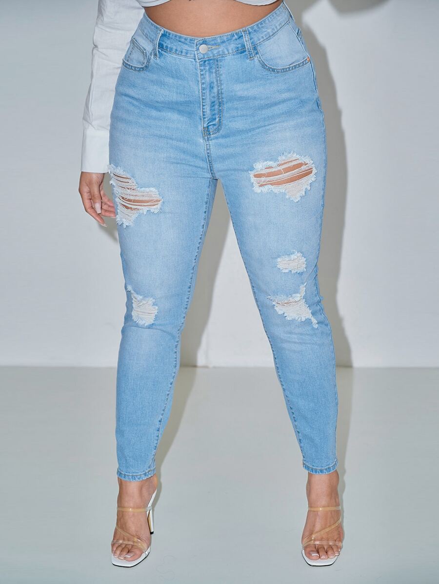 SHEIN SXY Plus Curvy High Waist Ripped Skinny Jeans